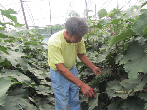 陈喜军种植反季节葡萄是从2006年开始的,不懂技术他就主动到吉林市农科院、吉林农业技术学院去学习,边学边实验。当年他在6000平米日光温室、塑料大棚种植的发季节葡萄仅收获葡萄1万斤左右,净收入只有6-7万元。随着他对发季节葡萄技术的逐渐成熟,已由农技师晋升为高级农艺师,陈喜军的反季节葡萄基地还成了吉林省农业技术学院学生的实习基地。他在同样面积种植的反季节葡萄,产量和效益却逐年增加。2007年产葡萄两万斤,纯收入21万元;2008年产葡萄4万斤左右,纯收入25万元;2009年产葡萄6.5万斤左右,纯收入29万元;2010年产葡萄8.2万斤左右,纯收入38万元;今年预计产葡萄可突破10万斤,产值可达55万元。由于老陈的反季节葡萄色泽美、果肉鲜,产品远销到长春、沈阳、哈尔滨等地。