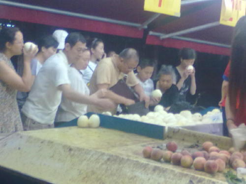 在八卦街附近的水果超市,记者看到很多柜台的水果都被“抢购”一空。很多市民聚集在水果超市,“抢购”自己所需的水果。有的柜台的水果已经全空。服务员告诉记者,前两天的大雨让水果的销量锐减,但是雨刚停,人们就都出来“抢”水果,现在几个柜台的水果基本卖空了。正在“抢”水果的一位市民告诉记者,这两天下雨,也没法出来买水果,家里的水果基本上都吃完了。正好晚上不下雨了,出来凉快凉快,顺便把水果买回去。通过记者走访发现,现在的应季水果和地产水果的价位目前没有大幅度的上涨,夏季市民青睐的西瓜价位仍维持在0.8—1.2元/500g之间。